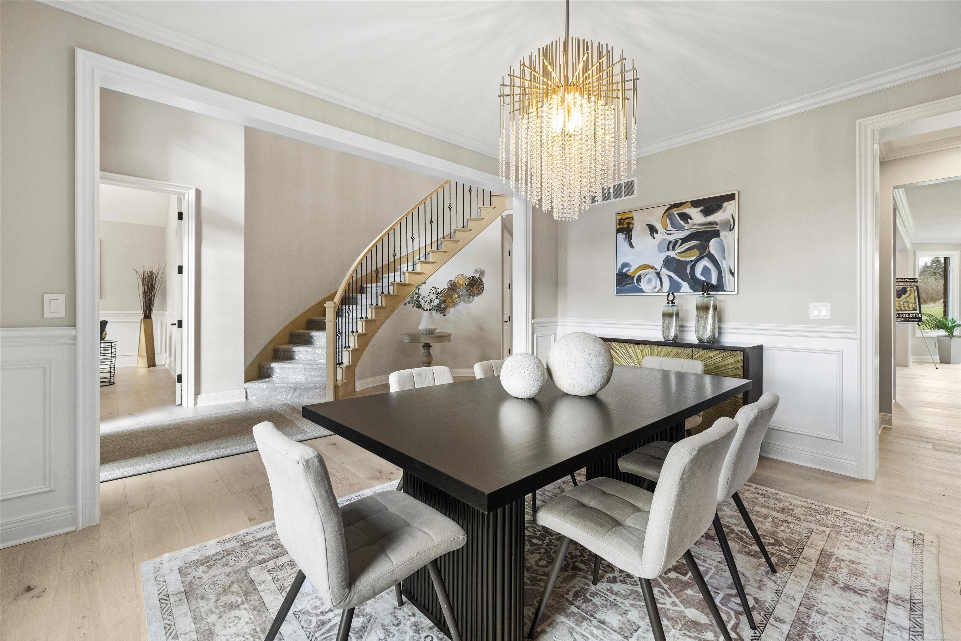 Experience unparalleled luxury in this Martini-Samartino designed masterpiece at 67770 Overlook Trail. This quick-delivery, new construction split-level offers 4,586 sq. ft. of refined living space with 5 bedrooms, 5 bathrooms, and a 4-car side-entry garage with dual EV chargers. The gourmet kitchen features Sub-Zero and Wolf appliances, Lafata cabinetry, and full slab quartz countertops and backsplashes. Enjoy soaring ceilings in the great room, a stunning fireplace, and expansive windows overlooking the pond. The main-floor primary suite includes a spa-like bath with soaking tub, oversized shower, and dual vanities. Upstairs, find spacious bedrooms including an open-concept Jack & Jill suite. The basement is insulated and ready for finishing with plumbing for a full bath, bar, and kitchen area. Located in the prestigious Seven Lakes subdivision.